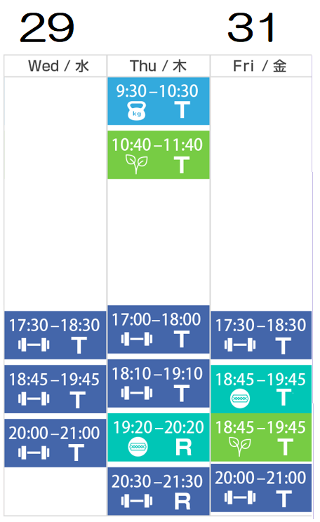 As Russell coached instead of Tatsuro January 13th to 16th, Tatsuro will be coaching the classes below in the end this month.