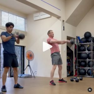 Recently we posted a video on instagram (see it here https://www.instagram.com/p/CU7hLsThq3b) in which Tatsuro and I were doing American kettlebell swings.